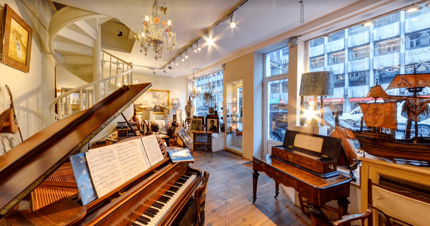 Norden Fin Antiques is een elegante kleine ruimte in de Regentschapsstraat in de Brusselse Zavelwijk. Het is gewijd aan weelderige oude muziekinstrumenten (violen, oude hobo’s, klavecimbels, kleine piano’s, enz.) evenals prachtige kunstwerken en andere objets d’art.